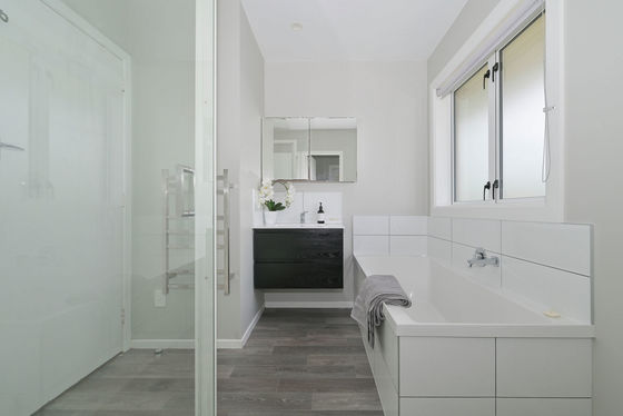 The main family bathroom features a bathtub - ideal for the little ones - while the generous backyard offers space for kids to play and families to enjoy time outdoors. Inside, the open plan area flows effortlessly onto a sunsoaked deck, the perfect spot to take in the beautiful water outlook and Kaimai backdrop.