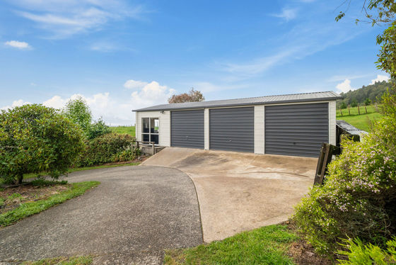 Four-bay garaging with horse stables, with extra sheds scattered around the property.