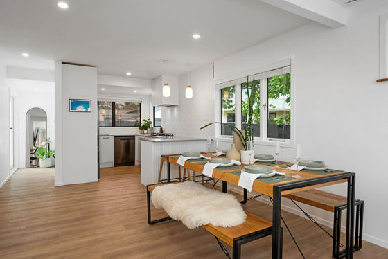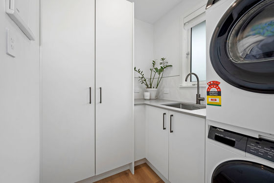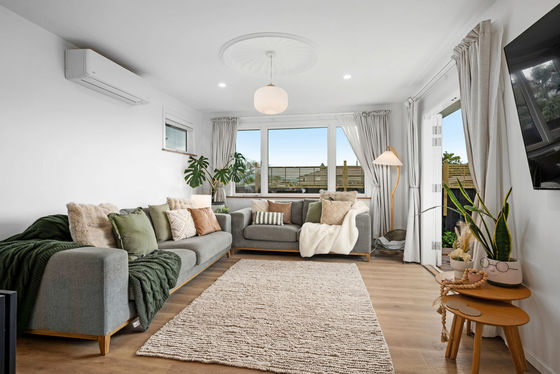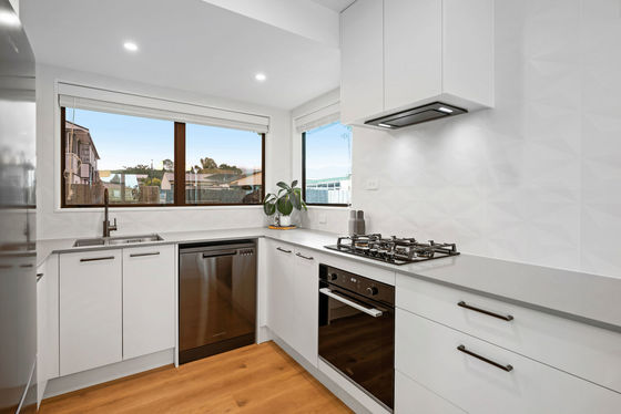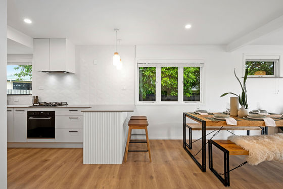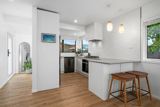 The sleek new kitchen sets the tone with stone benchtops, high-end appliances, and a clean, minimalist design. The open-plan living area connects seamlessly through French doors to a north-facing deck, filled with sunlight and surrounded by landscaped gardens. It's a private, easy-care space perfect for relaxing or entertaining.