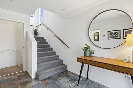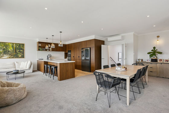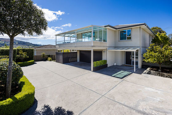 Head upstairs and you're greeted by sunshine and sweeping views towards the hills and Mount Cargill. The Taylor Made kitchen is the real showstopper " think sleek Corian benchtops, a big breakfast bar, beautiful dark appliances and induction cooking, and space for everyone to gather while dinner's on. The open-plan living and dining areas are ideal for entertaining, with sliding doors that let you create a cosy movie night zone when it suits. Flow seamlessly from the living space onto a covered deck, perfect for summer BBQs or alfresco entertaining.