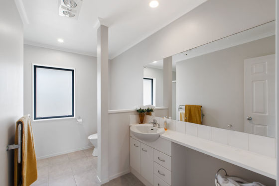 The master suite features a generous ensuite, a walk-in wardrobe, and external doors ideal for catching the summer breeze. The functional family bathroom offers separate facilities (toilet, shower, bath, and dual vanities/makeup area), ensuring multi-functionality during busy times.