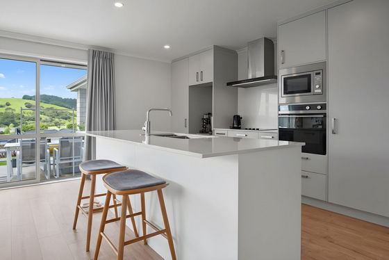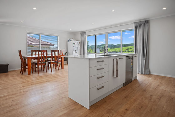 Discover effortless modern living at 5 Awa Avenue, Helensville - a stylish 2020s built four bedroom, two bathroom home in the highly sought after Parkview development. Perfectly positioned in an elevated spot, this property's standout feature is the impressive outlook to the Mckenzie Hills. The home's welcoming street presence is enhanced by its accented front pillars, adding a touch of character and modern elegance to the exterior.