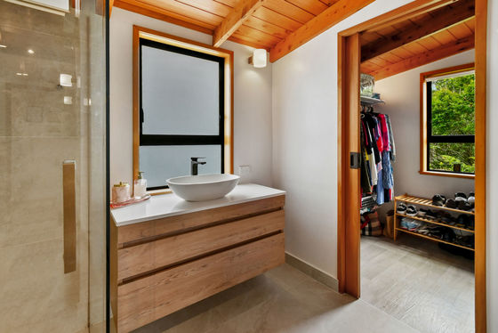 Soaring ceilings, native timbers and sun-filled rooms give the home a warm, relaxed feel, while neutral tones make it easy to move straight in and add your own touch.