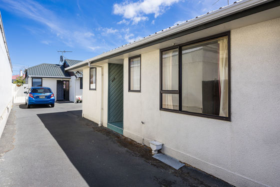One of three, the unit is situated at the beach end of Queens Drive, making it a short walk to a wealth of leisure activities and a five-minute drive to supermarkets and the South Dunedin shopping centre.