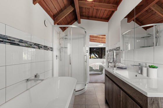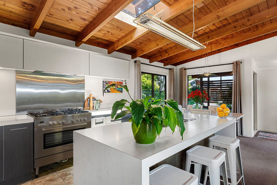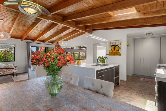 Light-filled and inviting, the spacious open-plan living area features a gas fire for cosy evenings, a well-appointed chef's kitchen with gas hobs, and beautiful sarked ceilings which enhance the home's natural charm. The seamless connection to a sheltered courtyard and an upper deck creates the ideal environment for alfresco dining or quiet moments soaking up the harbour peeps and glorious sunsets. Upstairs, the second lounge, kitchenette, and ensuite provide exceptional flexibility, perfect for extended family, guests, or an idyllic studio or work-from-home retreat. Every detail reflects thoughtful design, with abundant natural light, and spaces which adapt easily to modern lifestyles.