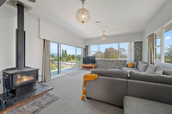 Upstairs you'll find three double bedrooms, while downstairs offers a versatile space that works beautifully as a second living area, a fourth bedroom, a home office, or a teenager's retreat. The open-plan living area is filled with natural light, warmed by a cosy wood burner, and flows easily to the balcony where you can relax and take in the lake glimpses and tranquil outlook.