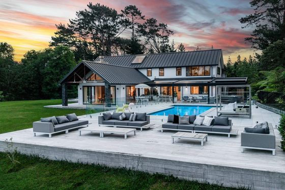 This luxurious modern home offers the perfect blend of style, comfort, and functionality, designed to cater to the needs of the whole family. Set on approximately 2.13 hectares of sweeping lawns framed by mature trees and native bush, the property provides both space and privacy in a truly picturesque setting.