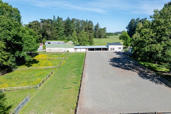 The proud owners of the multiple award winning Racecourse Hill want to pass the reins over for the next episode in the story of this magnificent landmark homestead. Whispers of Tara from Gone with the Wind pique the imagination when descending the magnificent staircase to the grand foyer. Survey the estate with its 25 hectares on horseback meandering past the private chapel over the lane lined with oak trees on your return to the stables. An Olympic size equestrian arena will prompt you to keep those horses fit. The orchard is a joy in late summer with copious fruit trees laden with apricots, peaches, plums, apples and more. You can build up a sweat on the tennis court then cool down in the nearby inground pool.