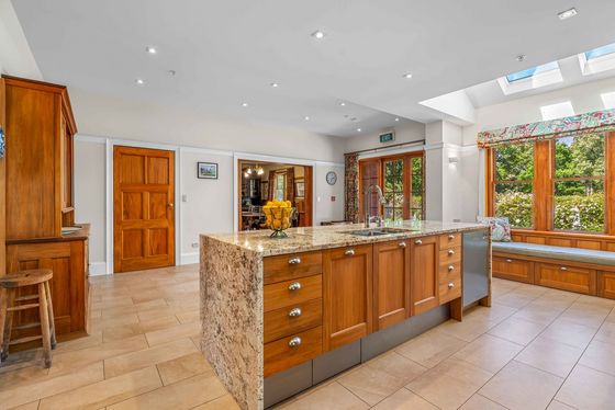 Family and friends are well catered for with the multitude of generously proportioned bedrooms and bathrooms. Each room has its own essential character and charm and wonderful views of the mature trees and gardens surrounding the homestead. Both the ground and upper storeys open to balconies and terraces, spaces for peaceful reflection, lunch or high teas or just somewhere where you can be you