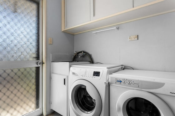 The master bedroom is very generously sized with double wardrobes, while the second bedroom is also a well-proportioned double. The bathroom features a new vanity, and there is a separate toilet for added convenience. Morning sun streams into the kitchen and dining area, and the open-plan living captures the afternoon warmth.