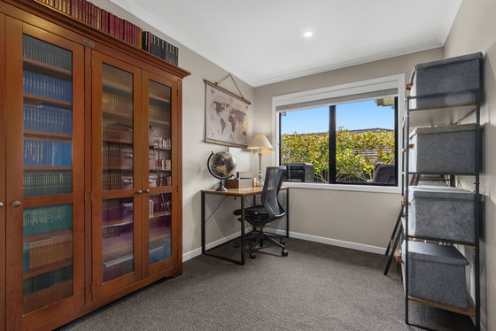 Four large bedrooms, plus a home office are serviced by an elegant primary bathroom complete with free standing bath and a separate powder room, while the master with ensuite and walk in robe is a stylish retreat opening to the private back yard. Of particular note are the opulent and sometimes ornate light fittings that enhance the refined lines of this warm and inviting home. With an eminently practical separate laundry finished to the same polished style, extensive storage and double garage with off-street parking, the wider urban views set against rolling green hills in the distance are a serene backdrop to this tranquil location. A bonus is the green space and playground a flat stroll away.