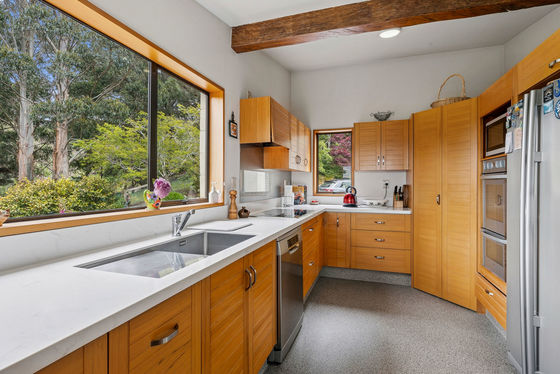 Set on just over 2 acres (9157m²) this hidden retreat offers a beautifully landscaped garden with a glass house, fruit trees, veggie gardens and a paddock for a few sheep or a pony.