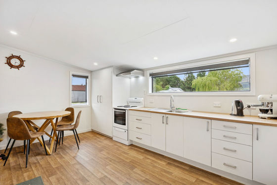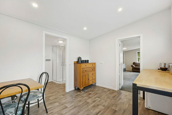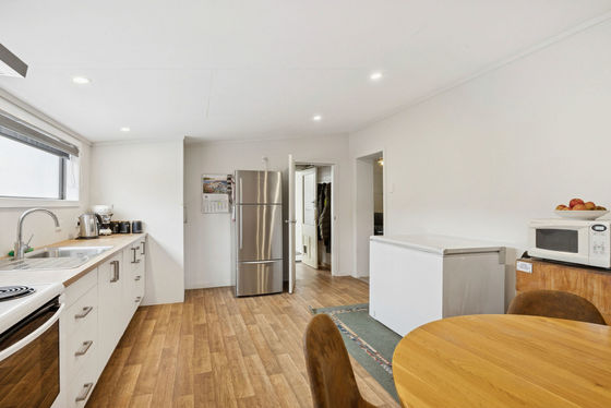 The main home is older style roughcast with an iron roof. Most of the joinery has been replaced with aluminium joinery other than the front windows which are original wooden ones. The three bedrooms and the lounge are still original; however the kitchen has been refloored, relined, rewired, the bathroom has been renewed with a new shower and toilet. Heating is Log Burner and an HRV system is installed.