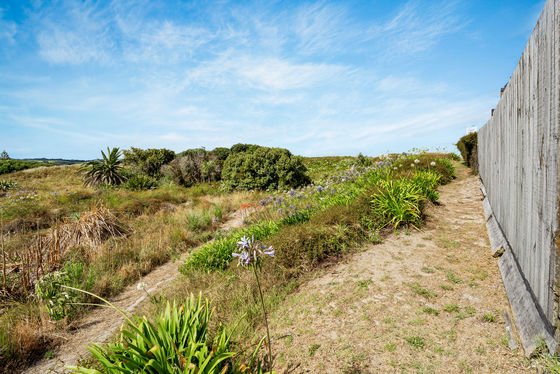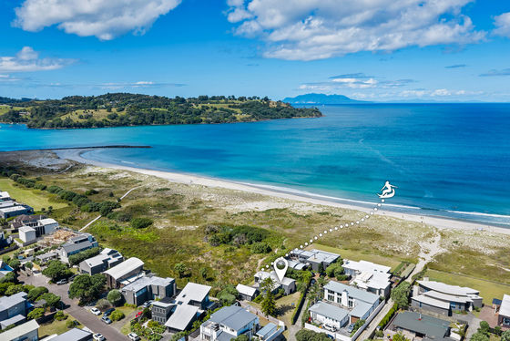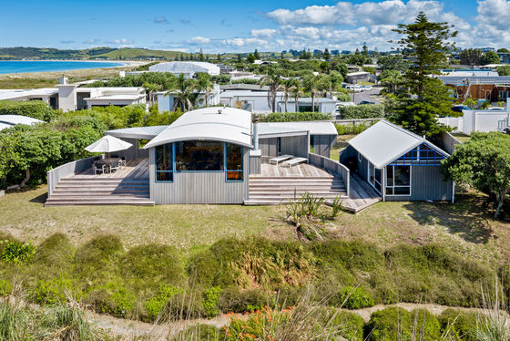 39 Success Court enjoys a prime beachfront reserve setting in Omaha North, with a broad, open outlook across protected dune reserve. Natural beach foliage softens the foreground, giving the home a relaxed coastal feel.