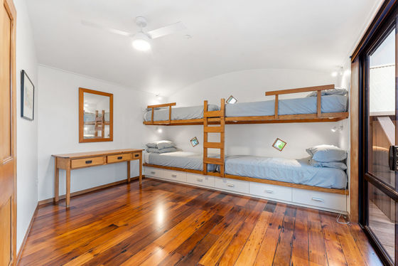 North-facing and just 60 steps to the sand and surf break, the home is designed for easy indoor-outdoor living. Three Kwila decks extend the living areas, offering options throughout the day for sun, shelter and entertaining, with the reserve as a constant coastal backdrop. The scale is deceptive as interiors are generous, flexible and well suited to extended family living, comfortably sleeping up to eight.