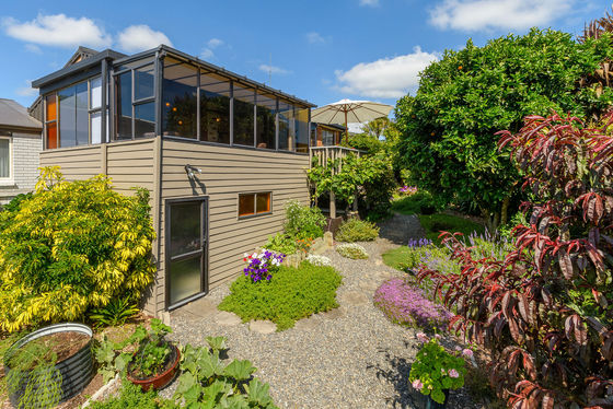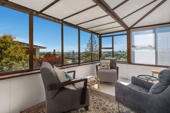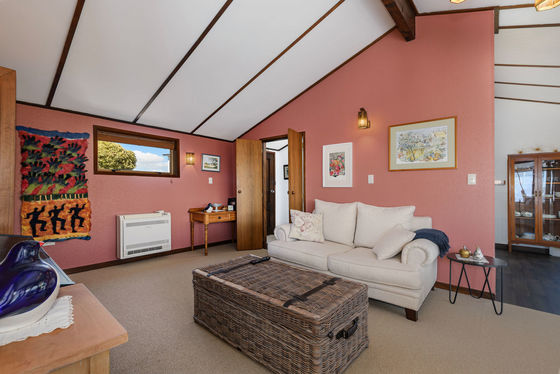 The heart of the home features open plan living with high stud ceilings, exposed beams, warm tones, and inviting textures. A sun drenched lounge and conservatory style retreat provide peaceful spaces to relax, entertain, or simply soak in the leafy garden outlooks and neighbourhood vistas stretching toward the Tauranga port. An artist's nook and cosy reading corners further enhance the home's creative spirit.