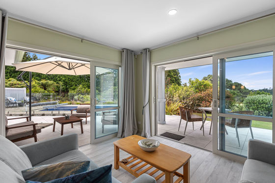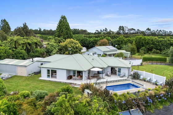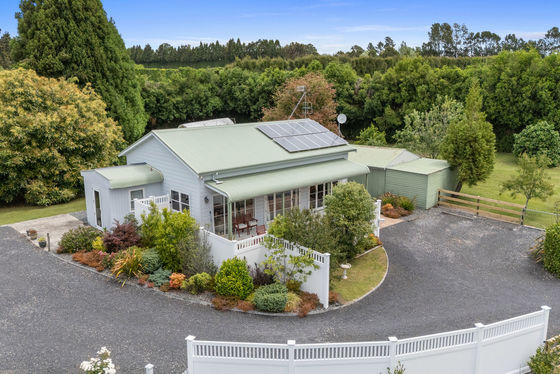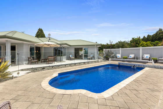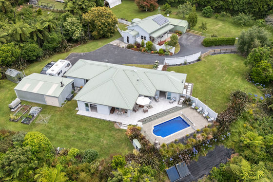 Tucked away down a private access way lies Bonnie Hideaway, comprising two beautiful dwellings on 8000m2 (more or less) of land. Built to capture all day sun, the main dwelling has 4 double bedrooms, the primary with an ensuite and walk in wardrobe. The kitchen, dining and two living areas look out through flush stacker doors to the solar heated inground swimming pool and over the Omanawa Gorge. Enjoy knowing that your view (and privacy) can never be built out.