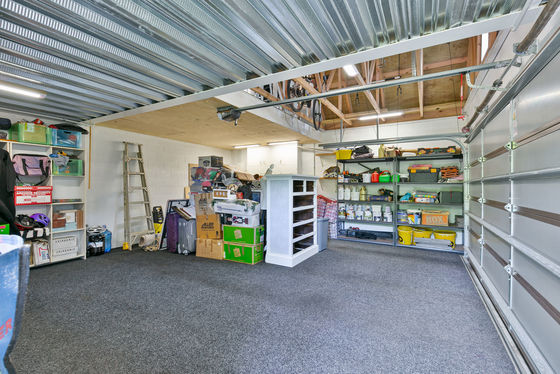 - Drive-on access with a single garage + double garage + workshop + storage + off-street parking.