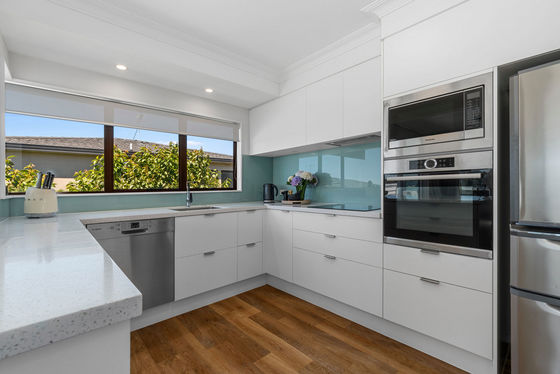 The open-plan living and dining area forms the social hub of the home, flowing into a modern, well-appointed kitchen that makes both everyday living and entertaining effortless. Large windows invite in natural light while framing the outlook, creating a calm and welcoming atmosphere throughout.