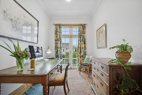 - Architecturally restored and rationalised by Philip Porritt, with three double bedrooms (one with a peek of the harbour, another with an ensuite and walk-in wardrobes), study with French doors to a sunny balcony (which could be a fourth single bedroom), and a spacious and superbly appointed bathroom with a walk-in shower and bidet.