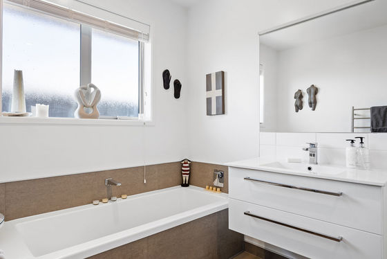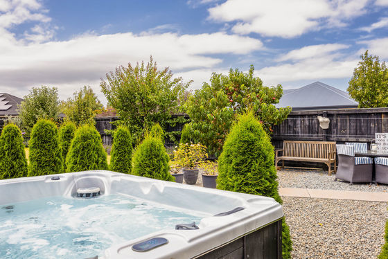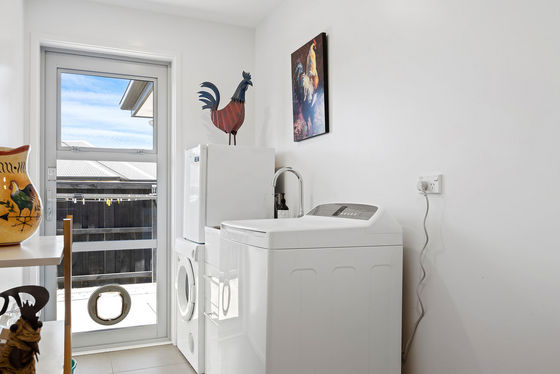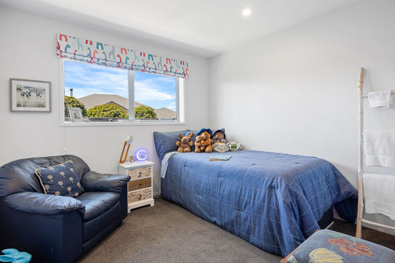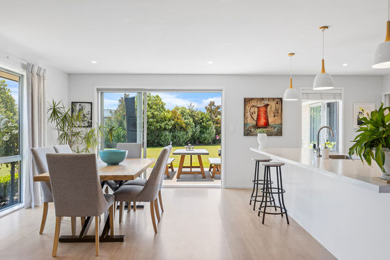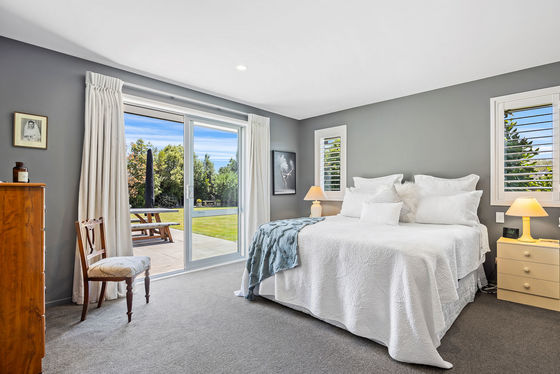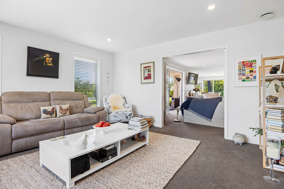 The master suite features a walk-in robe and tiled ensuite, while three further double bedrooms are complemented by a family bathroom and a separate toilet. Multiple heating options including a log fire on wetback, a heat pump and HRV system ensure comfort regardless of the season. Hallway storage helps keep clutter at bay, complemented by a separate laundry for added practicality.