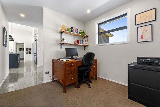 Inside, the home unfolds beautifully with thoughtful design and excellent separation of spaces. Four generous bedrooms and two bathrooms are thoughtfully laid out, with the master suite privately positioned at one end of the home, creating a true sanctuary away from the rest of the household. Two living areas offer flexibility for families or entertaining, while a clever study nook provides the perfect work from home solution. High stud, light filled living areas connect effortlessly to the outdoors, creating an easy flow for both everyday living and special occasions. The internal access double garage completes the indoors.