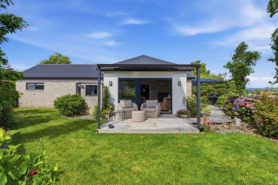 Indoor-outdoor flow is a standout feature, opening to a covered patio where you can unwind or entertain while taking in the lovely views. This space is ideal for year-round enjoyment, whether it's summer barbecues or relaxed evenings outdoors. The home is further enhanced by established, well-maintained gardens, creating a peaceful and private setting.