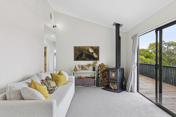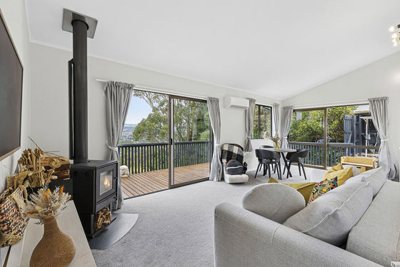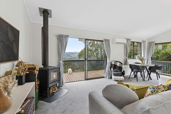 Tucked away at the end of a quiet cul-de-sac, this elevated and private home offers peace, beauty, all-day sun, and a rare connection to nature. With three bedrooms plus a study and one bathroom, it's designed for comfort - unwind in the deep bath or stay cosy by the log burner through winter.