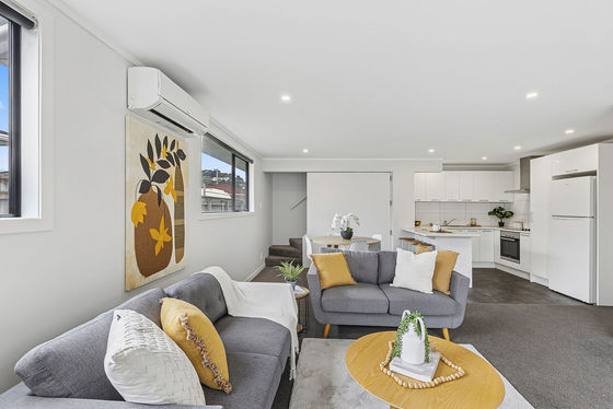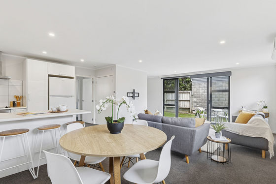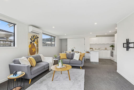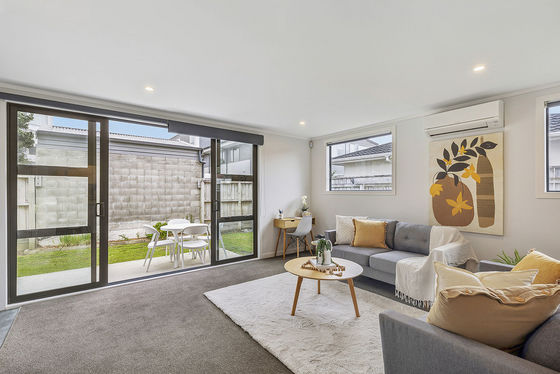 The bright and airy family lounge, dining room and contemporary modern kitchen flow down the north and west side of the property, providing a sunny aspect with double sliding doors flowing out to the low maintenance patio and garden.​ Three double bedrooms, all with built-in robes, two bathrooms and a separate laundry, heat pump for year-round comfort, great storage, and the use of neutral colours, coupled with large, double-glazed windows, enhances the welcoming atmosphere.