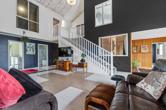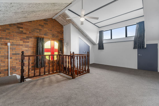 The property sits on just over 8,500 square metres and began life in 1971 as St Michael's Catholic Church before being comprehensively converted into a residential home in 2015. The renovation was done properly - new plumbing, new electrical, new drainage and septic system, two 20,000-litre tanks with Ngaruawahia trickle feed supply, and modern upgrades including double cavity brick construction, steel portals, concrete floors, acoustic ceilings, insulation, double glazing and earthquake bracing.