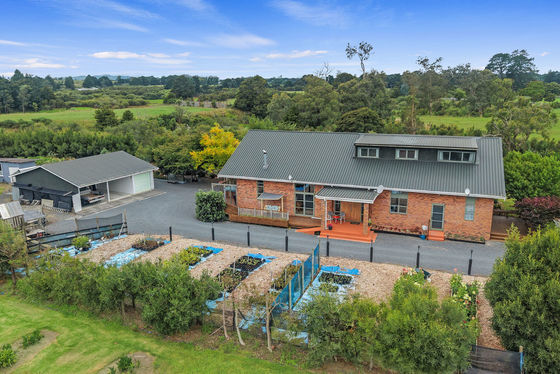 Outside, the lifestyle element really unfolds. There's an 88-square-metre three-car garage with a double workshop at the rear, plus a hay shed, poultry shed and glasshouse. The gardens and exotic plantings are well established and genuinely stunning.