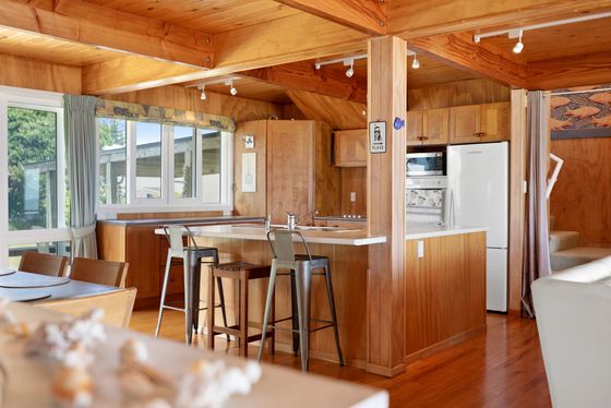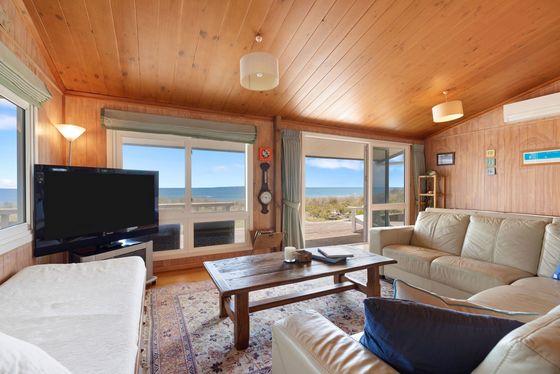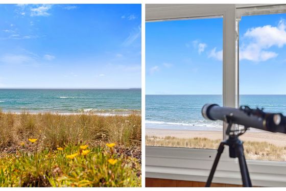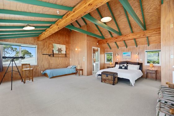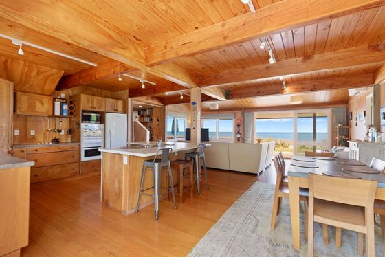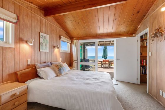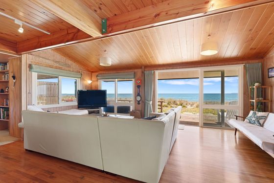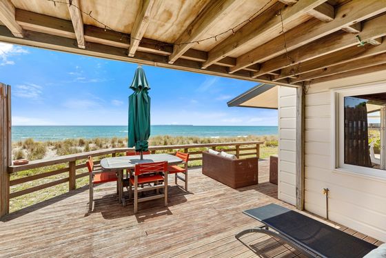 Positioned on a rare and generous 903m² absolute beachfront site in the tightly held and prestigious Taylor Road cul-de-sac, this elevated property is Rich Rimu and Tawa timber floors bring warmth and character throughout, while the bespoke chestnut kitchen is a unique and beautiful feature that anchors the home with natural elegance.