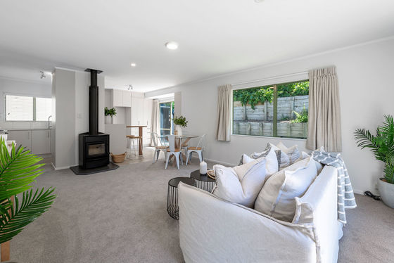 Upstairs, the heart of the home features a generous open plan living, dining, and kitchen area. Light filled and modernised, this space is designed for easy everyday living and relaxed entertaining. Large windows invite in natural light, while the seamless flow to the sunny deck makes indoor-outdoor living effortless. This is the perfect spot for morning coffee, weekend gatherings, or simply unwinding while enjoying the outlook and birdsong.