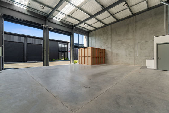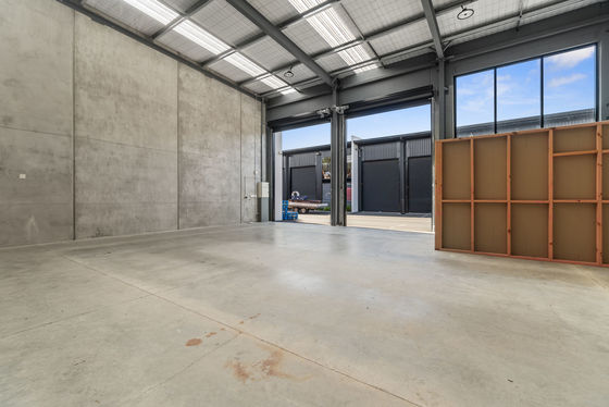 • Functional warehouse with dual roller door access and clear layout.