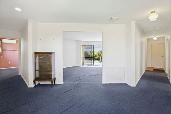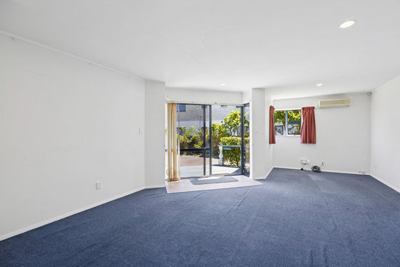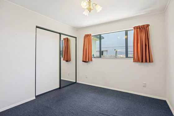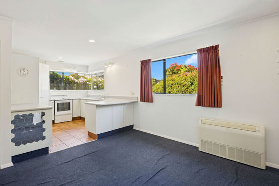 The open-plan kitchen and dining area flows into a generous living space, with the kitchen offering excellent storage including a full-height pantry and dishwasher. Heat pumps ensure year-round comfort, while aluminium joinery adds to the home's durability. Both double bedrooms include built-in wardrobes, and the well-appointed bathroom features a separate bath and shower, complemented by a separate toilet for added convenience.