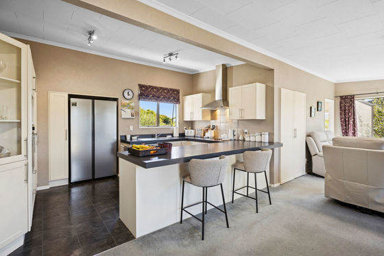 Carefully modernised over the years, the property retains its original features, creating a warm and welcoming atmosphere while still delivering all the conveniences of contemporary living. The thoughtfully designed floor plan is both practical and versatile, with two generous living areas that are ideal for family life or entertaining guests. For year-round comfort, the home is well heated with a pellet fire and open fire that adds both warmth and ambiance, complemented by two heat pumps for efficient, easy climate control in every season.
