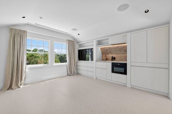 Perfect for in-home care, guests or perhaps one lucky teenager, is the fully self-contained studio above one of the double garages. This lavish space also offers great close sea views, a marble ensuite, and a full kitchen.