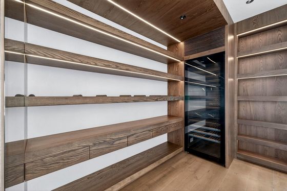 The upper bedroom level houses the master suite with a spacious bedroom, two marble bathrooms, two walk-in wardrobes and a private office. Every additional bedroom offers stunning private marble bathrooms with Fantini tapware and excellent wardrobe spaces, integrated sound and televisions.