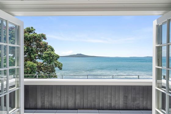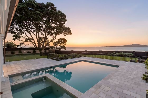 A stunning addition is the eight-seater "certified" home cinema. It is one of only two in NZ at an eye-watering seven-figure cost. All three living spaces flow seamlessly to tiled terraces (ground floor) or terraces overlooking the pool on the mid floor. The views of Rangitoto and its relationship with the water are first class.