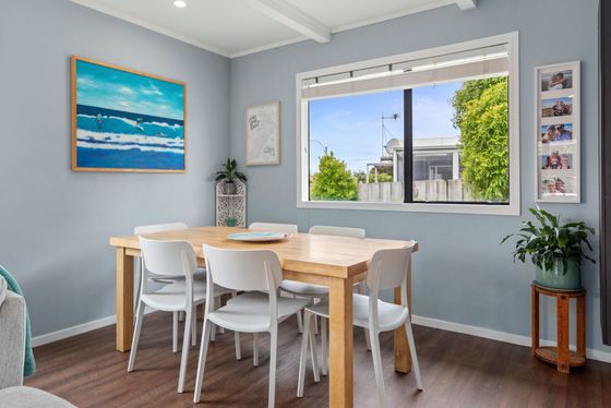 Welcome to the essence of Kiwi coastal living, where sun soaked days, relaxed entertaining and space for the whole family come together. Set on a fully fenced 607 sqm freehold site, this much loved three bedroom, two bathroom home has been cherished by its owners. Now, as they move on to their next chapter, this is your opportunity to make it yours.
