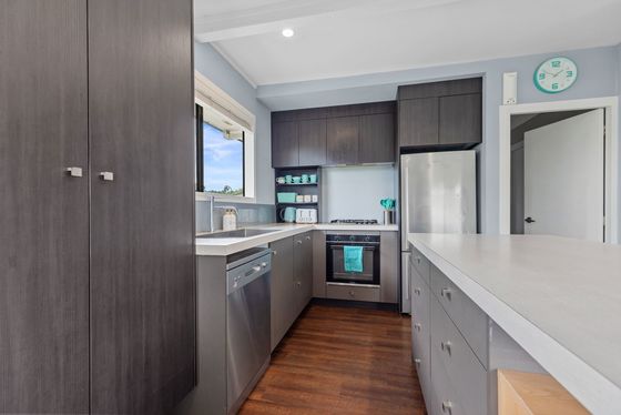 From the moment you step inside, the home feels bright, warm and welcoming. Natural light pours into the generous open-plan living and dining area, creating an inviting atmosphere that instantly feels like home. Large ranch sliders open seamlessly onto a private deck, making it a great space for entertaining. The modern kitchen features a large island bench and clever storage solutions, keeping everything organised and within easy reach.