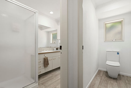 Accommodation includes three bedrooms, with the master offering a walk-in wardrobe, ensuite, and its own heat pump. The family bathroom features a bath, vinyl flooring, spacious vanity, and a separate toilet, with new toilets installed throughout.