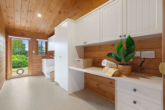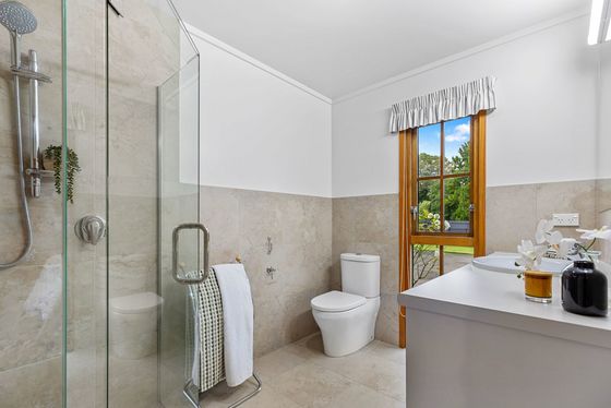 The home is designed for year-round comfort with Rinnai gas hot water, Rinnai gas fire, heat pump, three wall heaters, DVS system, and the added luxury of heated flooring in the bathrooms. Quality features continue with aluminium double-glazed windows and doors, colour steel roofing, a separate laundry, and a linen closet with heater.