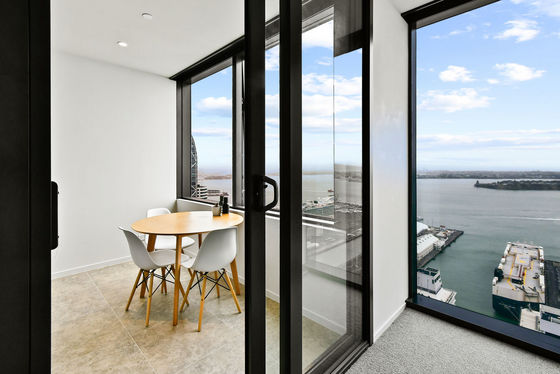 Located in the stunning Pacifica building, this lovely one-bedroom 70sqm (more or less) 39th floor apartment is truly something special. Featuring a 180-degree view of the Waitamata Harbour looking toward Devonport with a peak of Rangitoto, you will find yourself mesmerized.