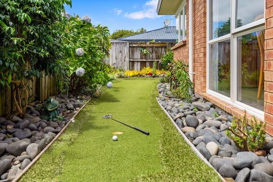 Adding a fun and unique touch is your very own putting green " perfect for practice or friendly games with family and friends.