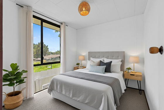 Fully insulated and equipped with a heat pump, the home remains warm and comfortable throughout the cooler months. Floor-length windows throughout maximise sunlight and create an airy, uplifting atmosphere year-round.