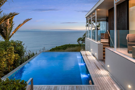 94-98 Lax Crescent occupies a prime position above Daniels Reef, with wide views across the Hauraki Gulf to Little Barrier, the Coromandel and Tawharanui. From this private vantage point, there is always something happening on the water, whether it's fishing boats heading out, surfers working the reef, passing ships or marine life moving through the Gulf.