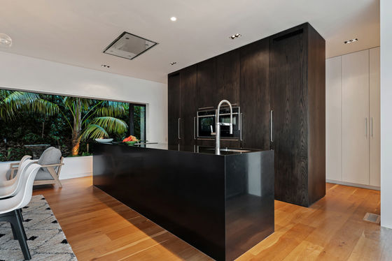 American oak flooring adds warmth, while full-height joinery and clean lines give the interiors a timeless, contemporary feel. The kitchen is both functional and social, with a large island, high-end appliances and supported by a separate scullery and laundry.