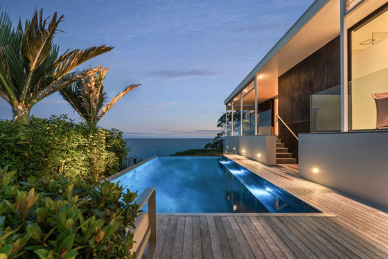 Outdoor living has been significantly recently enhanced by the current owners. A heated infinity pool sits alongside newly constructed decks and lush tropical landscaping, creating a private, sheltered environment for entertaining or relaxing. The planting provides a sense of enclosure without interrupting the outlook.