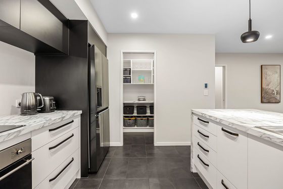 At its centre, the designer kitchen makes a striking statement. A waterfall island, walk-in pantry, and premium appliances combine to form a space that is as functional as it is visually impressive - ideal for both intimate family moments and larger-scale entertaining.